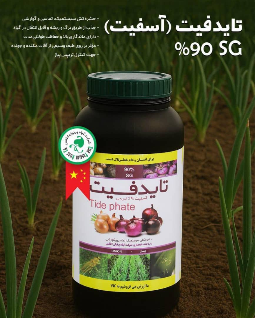 تایدفیت آسفیت 90% SG یک حشرهکش سیستمیک، تماسی و گوارشی با فرمولاسیون گرانول محلول در آب (SG) است که از گروه فسفرههای آلی (Organophosphates) میباشد. این محصول برای کنترل آفت تریپس پیاز در ایران به ثبت رسیده و عملکرد بسیار مؤثری در کنترل طیف وسیعی از آفات در کشورهای مختلف نشان داده است.